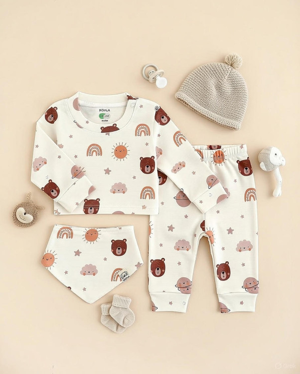 ست بلوزوشلوار راحتی سه تیکه نوزادی کوالا